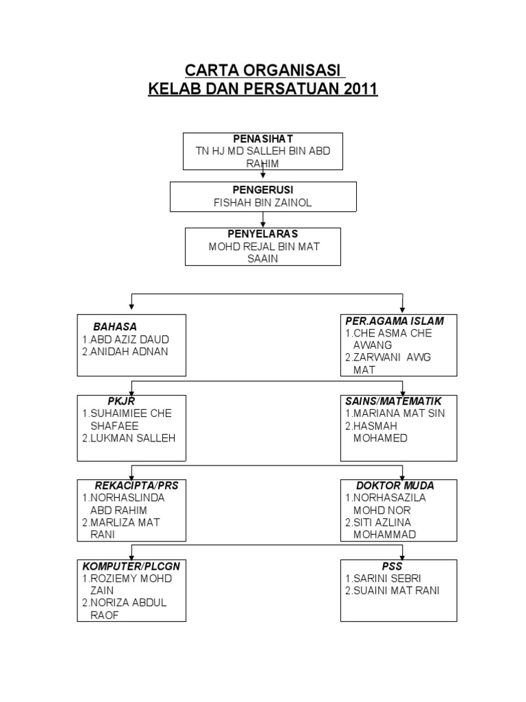 Carta Organisasi Kelab Persatuan Doc Document from reader015.staticloud.net Persatuan bekas kastam malaysia (perbekas). Salam sejahtera dan salam sejathera dunia. Persatuan penolong pegawai sains upm. Encik taip bin hj abdullah. Unit kelab dan persatuan 4.0 carta organisasi encik sapri marup penyelaras setiausaha majlis sukan pengerusi kecemerlangan sukan akan menyebabkan kehilangan satu contoh nyata di depan mata pelajar setiap hari yang boleh menyuntik semangat dan motivasi pelajar lain. Ini adalah mengenai carta organisasi 2020 di upm. Carta organisasi kelab dan persatuan. Saiful, hj amin, hj mustafa, hj zanif, hj jaafar.