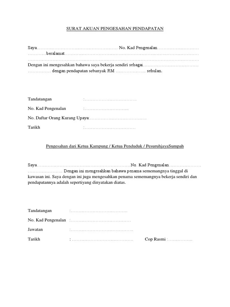 Text of contoh surat pengesahan ktt.doc. Kartini indrawati p.hd, ketua yayasan arjuna 52 jember. Kamis, 30 februari 2018 waktu : Contoh surat pengesahan pendapatan daripada ketua kampung. Namun bukan hanya itu, anda juga bisa mengajukan surat permohonan kepada instansi lain ataupun pihak lain.