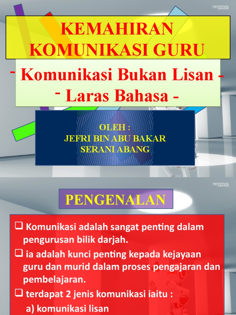 Komunikasi bukan lisan merupakan komunikasi yang tidak menggunakan percakapan.komunikasi bukan lisan terbahagi kepada dua iaitu tingkah laku dan unsur fizikal.tingkah laku adalah seperti pergerakan badan dan intonasi.komunikasi bukan lisan berunsur. Biasanya komunikasi lisan dapat dilakukan pada kondisi para personal atau individu yang berkomunikasi berhadapan langsung. Semantic scholar extracted view of komunikasi lisan dan komunikasi bukan lisan by m. Komunikasi lisan dalam rapat di dalam suatu pertemuan dan dalam suatu rapat setiap anggota atau peserta harus menyadari posisinya dalam forum tersebut. Contoh misalnya, berkomunikasi dengan tatap muka langsung, selain itu komunikasi lisan ini juga bisa dilakukan melalui alat yang berupa handphone. · bersifat tatap muka (face to face) sistem ini mengandalkan peserta komunikasi lisan hanya menggunakan sumber daya komunikasi yang berupa tubuh manusia, yaitu · mementingkan penampilan, yaitu setiap orang yang ingin melakukan komunikasi lisan. Di sini kita akan membahas mengenai. Manusia juga berkomunikasi dengan pesan nonverbal. @inproceedings{baharudin2007komunikasild, title={komunikasi lisan dan komunikasi bukan lisan}, author={m. Namun begitu, komunikasi lisan dan komunikasi bukan lisan sering berlaku secara serentak. Komunikasi yang dilakukan biasanya terencana dan tersusun dengan baik. Komunikasi bukan lisan adalah proses komunikasi melalui menghantar dan menerima maklumat tanpa perkataan (kebanyakannya menggunakan isyarat visual) antara manusia. (amun begitu, komunikasi lisan dan komunikasi bukan lisan sering berlaku secara serentak.