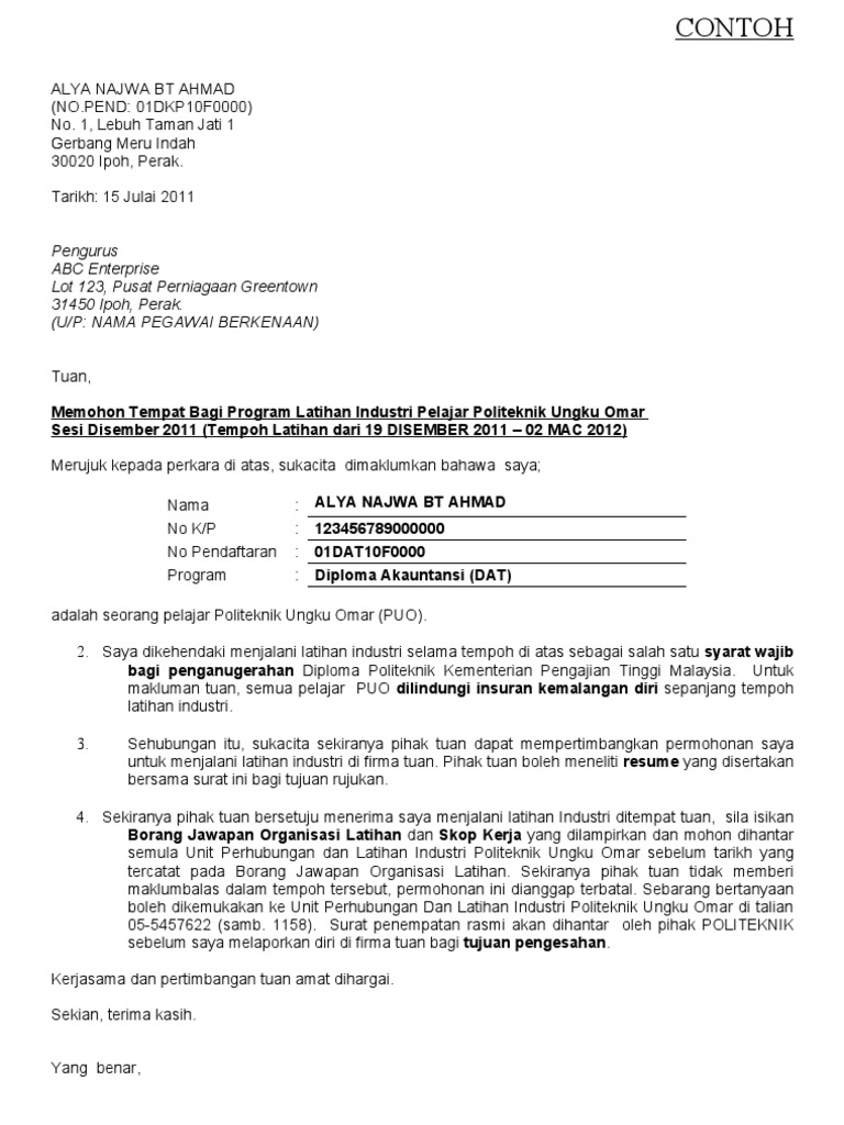 Contoh Surat An Tempatli from imgv2-2-f.scribdassets.com Jalan raja musa mahadi, 31400 ipoh, perak, ipoh, 31400, malaysia. Permohonan kemasukan ke politeknik dan kolej komuniti sesi akademik 2020/2021 dibuka bagi Ungku omar bin ungku ahmad. , politeknik ungku omar 00:05 perasmian trc edu center oleh menteri pada 20 februari 2018. On the first day i came here, everyone is busy making new friends but i was looking for my friends who have been separated for a long time. Politeknik ungku omar on wn network delivers the latest videos and editable pages for news & events, including entertainment, music, sports ungku omar polytechnic was established in 1969 by the malaysian ministry of education, aided by unesco. Politeknik ungku omar (puo), ipoh, malaysia. Saya dikehendaki menjalani latihan industri selama tempoh di atas sebagai salah satu syarat wajib bagi penganugerahan diploma politeknik kementerian pengajian tinggi malaysia.