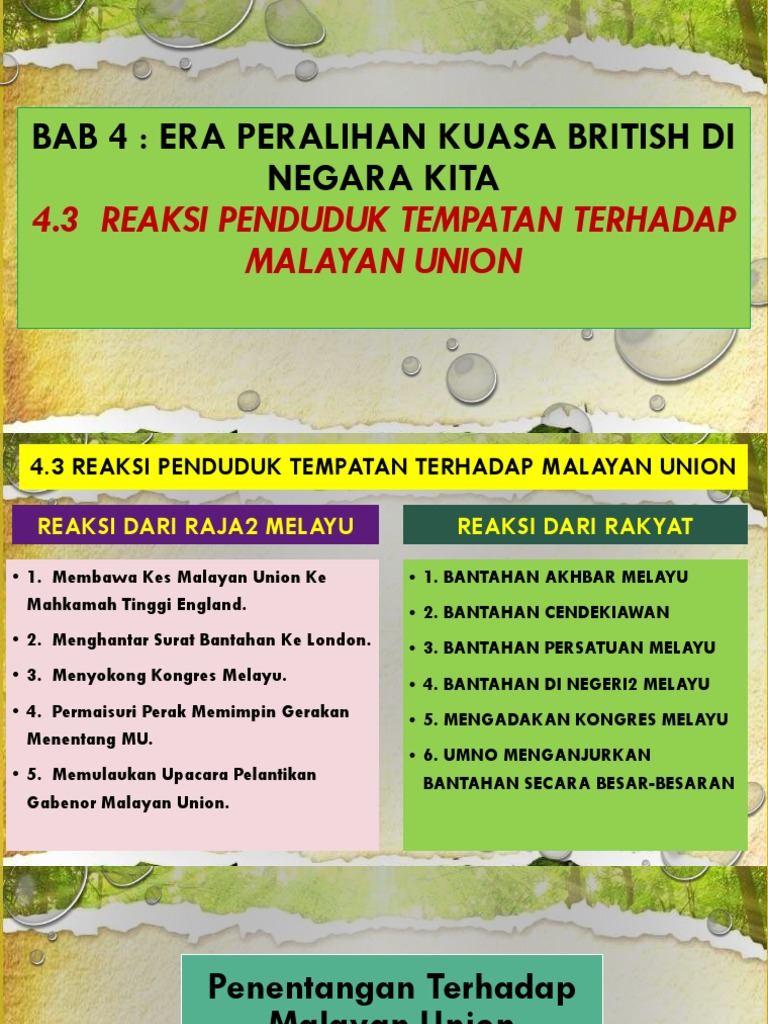 Reaksi, isu dan tuntutan bangsa melayu. Kekalahan british terhadap tentera jepun. Pembentukan kerakyatan malayan union 1946: Ada 20 gudang lagu sej f5 kbsm reaksi terhadap malayan union terbaru, klik salah satu untuk download lagu mudah dan cepat. · bantahan terhadap malayan union berjaya menyatukan orang melayu.