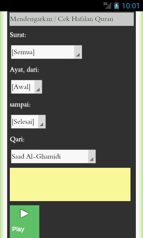 Berikut ini audio mp3 murottal al quran dan artinya dari syaikh mishary rashid al afasy yang sudah kami urutkan pada tabel di bawah, silahkan teman teman download audionya. Untuk kata yang akan dicari terjemahan melalui kamus maka langkah pertama adalah menghilangkan, jika ada, kata ganti. Semoga dengan adanya bacaan dan terjemahan tersebut, saudara/saudari muslimin/muslimat mendapat lebih kefahaman makna dan isi. Al quran ialah fitur yang paling ditunggu pada islamicfinder. Download al quran ~ terjemahan dalam bahasa melayu.