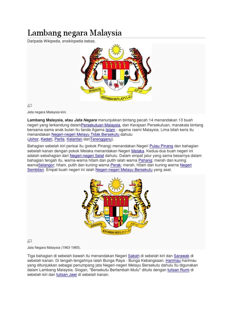 Senarai Jata Negara Malaysia Wikipedia Bahasa Melayu Ensiklopedia Bebas from upload.wikimedia.org Lambang harimau menunjukkan keberanian rakyat negara kita dalam menjaga keselamatan negara. Kulit buku itu memaparkan jata negara kita diparodikan dan diubah menjadi sebuah bentuk yang boleh dikatakan hina dan jelek. Membezakan my drpd negara lain 2. #jata negara maksud lambang #maksud lambang jata negara malaysia #maksud lambang jata negara sejarah tingkatan 5. Apakah maksud lambang bulan sabit dalam jata negara malaysia. Reka bentuk jata negara telah diusahakan oleh jabatan ukur dengan menggunakan enam warna. Lambang malaysia, atau disebut jata negara di malaysia terdiri dari perisai yang ditopang dua harimau. Jata negara adalah lambang yang menandakan satu negara merdeka dalam bentuk pencapaian lambang.